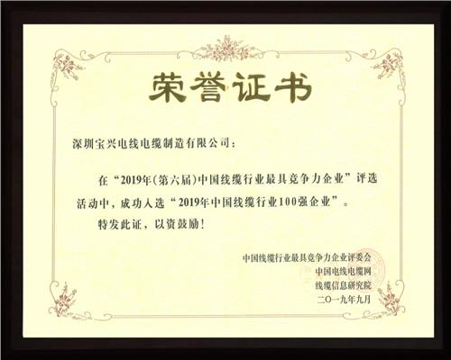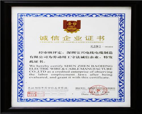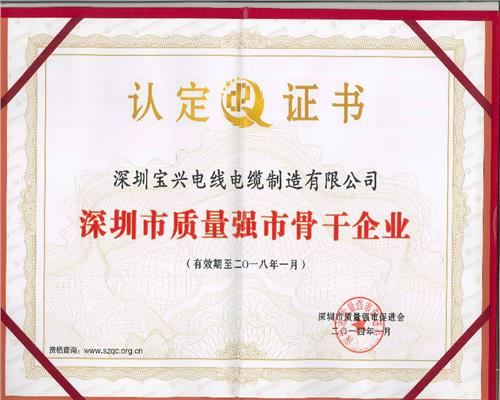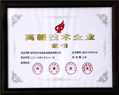 被海關(guān)授予“信得過企業(yè)”、被工商銀行分行授予“AAA”級信用企業(yè)、被中國企業(yè)登記年鑒委員會授予“明星企業(yè)”、被深圳市外商投資企業(yè)協(xié)會評為“全國外商投資雙優(yōu)企業(yè)”、被深圳市科技與信息局授予“深圳市高新技術(shù)企業(yè)”、被寶安區(qū)評為“文明企業(yè)”、“國家高新技術(shù)企業(yè)”、“深圳市質(zhì)量強市骨干企業(yè)”、“廣東省著名商標(biāo)”、廣東省電線電纜行業(yè)協(xié)會理事單位、太陽能、新能源和機器人協(xié)會會員、深圳市企業(yè)創(chuàng)新發(fā)展促進(jìn)會副理事單位、深圳市航空航天產(chǎn)業(yè)協(xié)會、中國線纜百強企業(yè)、寶安區(qū)百強企業(yè)、寶安區(qū)誠信企業(yè)、廣東省智能傳導(dǎo)特種電線電纜工程技術(shù)研究中心、廣東線纜行業(yè)最具競爭力企業(yè)20強等